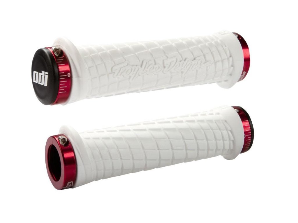 ODI GRIPS Troy Lee Designs Signature ATV Lock-On Bonus Pack White w/Red Clamps